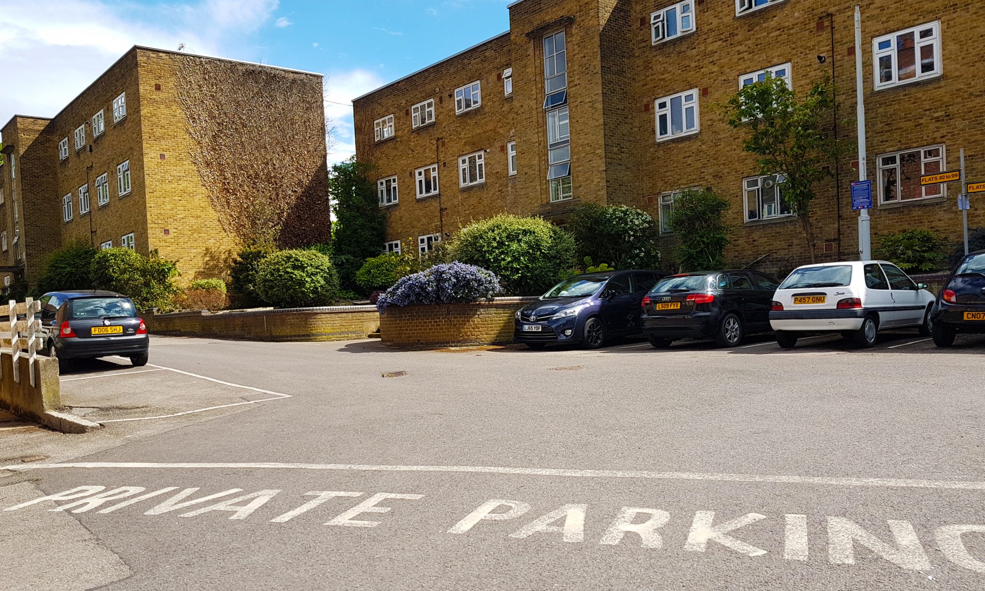 If the spaces near your property are occupied, there is additional parking to the right of flats 76-81 and to the left at the top end of the estate past flats 94-99.